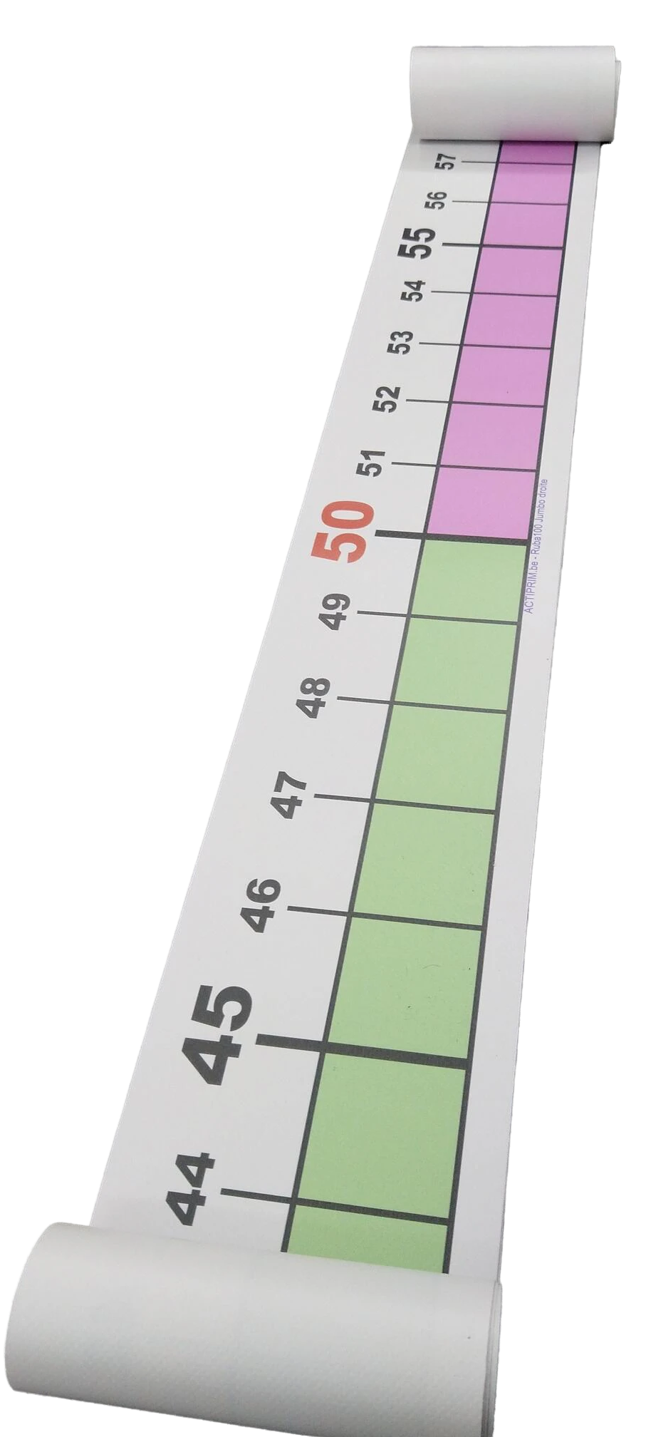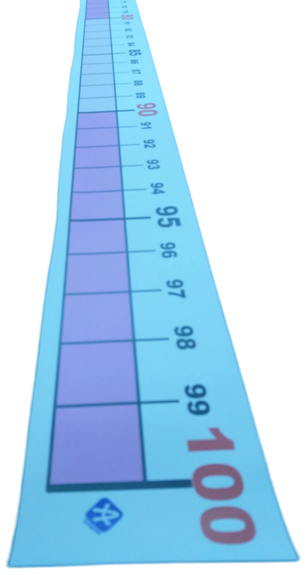 Une seule bandelette de 5 m (sans coupure) avec les dizaines en rouge.