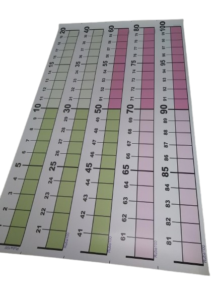 Droite géante des 100 premiers nombres à assembler et à afficher au-dessus ou en dessous du tableau sur toute la largeur de la classe (5 m)